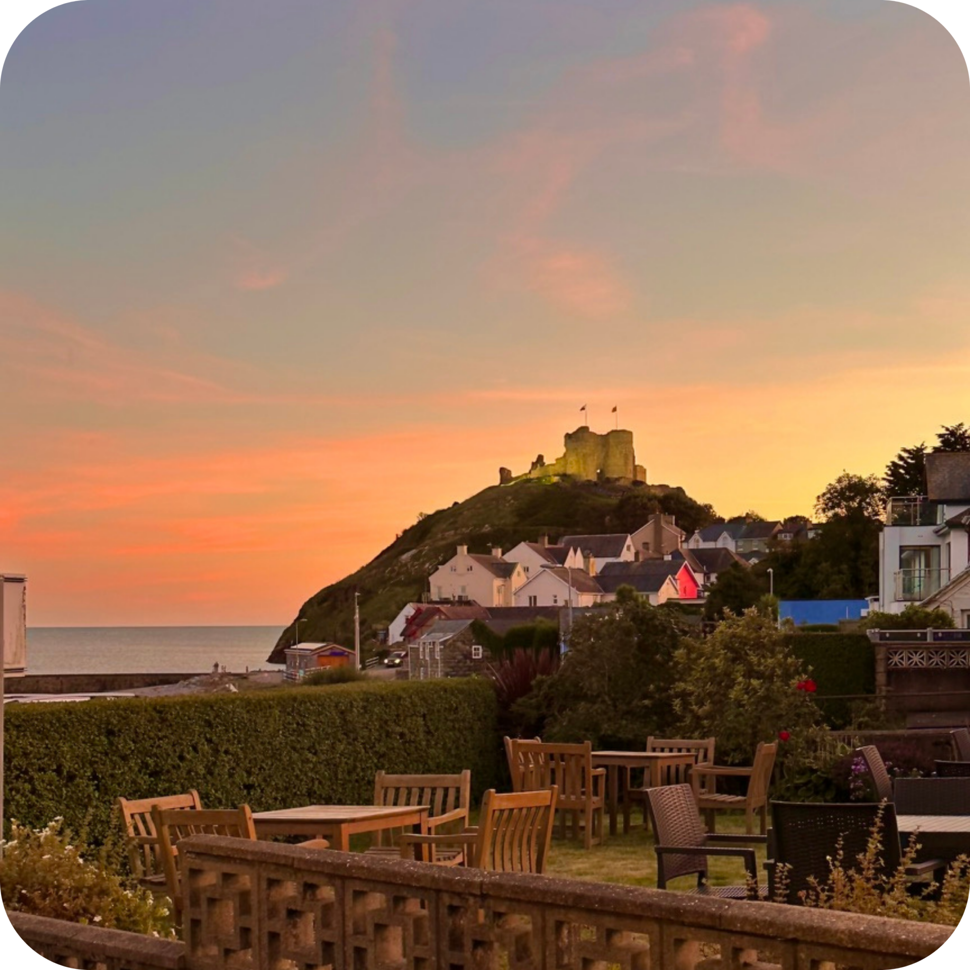 Occupying a privileged position on the east side of Criccieth’s Esplanade, the hotel enjoys a sunny, south-facing aspect with uninterrupted views across the main beach, Tremadog Bay, and the historic ruins of Criccieth Castle. As a landmark Victorian building, it offers some of the most admired seaside views in North Wales.